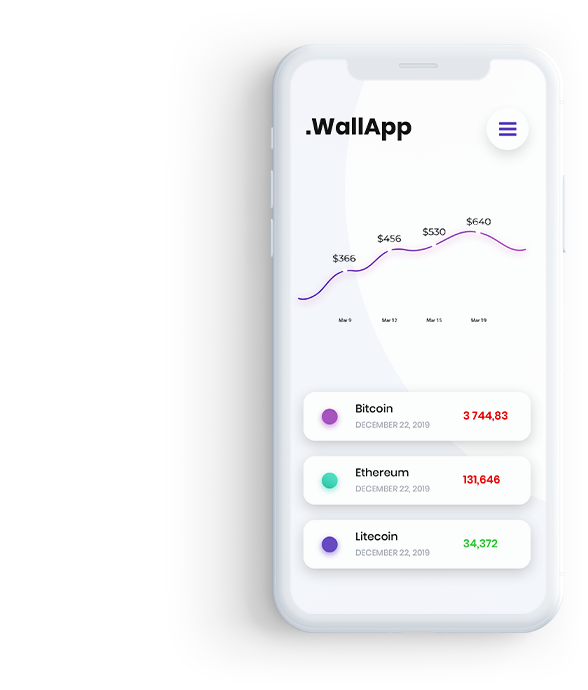 The application feature set includes transaction overview, sending and receiving payments, price charts, payee management and a indicator displaying.